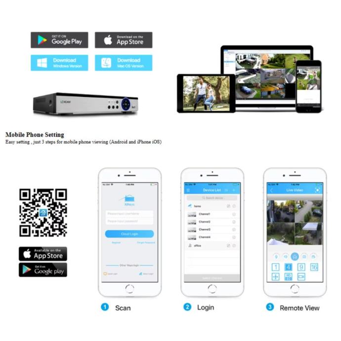 Na temelju P2P tehnologije, naš sustav omogućava siguran daljinski pristup putem mobilnih aplikacija za iOS i Android. Time možete pratiti svoje kamere i u realnom vremenu s bilo kojeg mjesta. Dodatno, sustav podržava enkripciju podataka, što garantira sigurnost vaših snimaka i osobnih informacija.