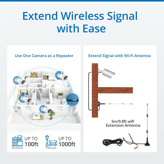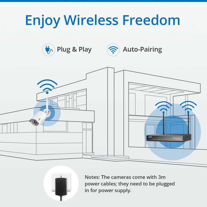 POTPUNO BEŽIČNO - Kamere imaju WIFI antenu preko koje komuniciraju sa snimačem. Domet antene do 60 metara.