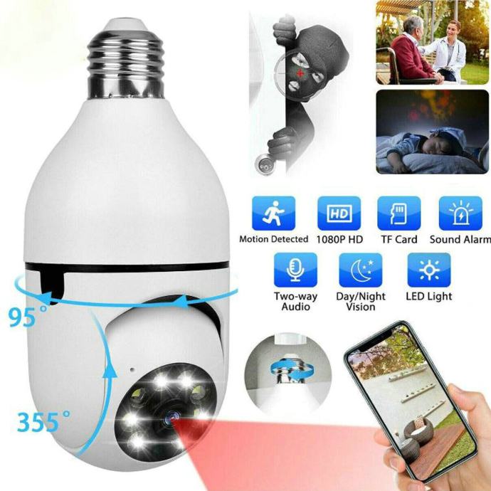 360° Wireless Camera Light Bulb Security Home CCTV Cam Monitor Waterproof WiFi