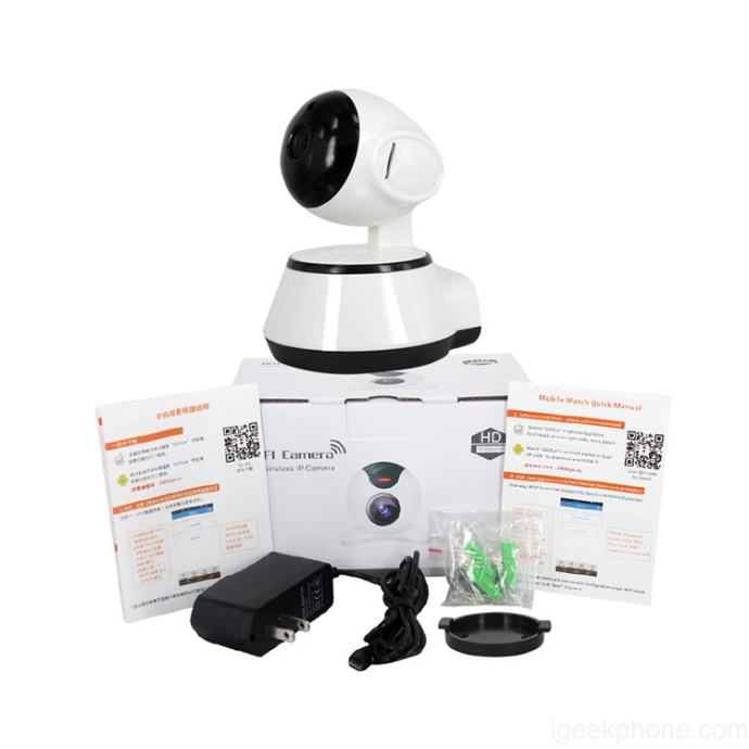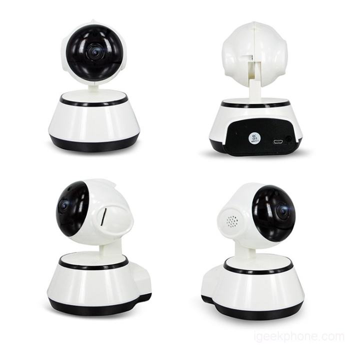 Bežična pokretna Wi-Fi nadzorna kamera bežično se spaja na vaš router te omogućuje pregled situacije snimanog prostora u realnom vremenu i potpunu kontrolu nad kamerom iz bilo kojeg dijela svijeta sa bilo kojeg modernog mobitela. Kamera je pokretna u svim smjerovima te ju možete usmjeriti u bilo kojem smjeru preko mobitela/tableta te tako nadzirati kompletan prostor. Kamera ima SD utor u koji možete umetnuti SD memorijsku karticu od 32, 64 Gb, preporučuje se SD kartica od 64 GB (SD memorijska kartica nije priložena ovom kompletu) na koju će se sve snimati a vi imati mogućnost kasnijeg pregledavanja snimaka. Infracrvene diode omogućuje noćno gledanje i snimanje u potpunom mraku. Osim video snimke uz video nadzor imate i dvosmjerni audio zapis, što znači da osim sto čujete zvukove iz prostorije isto tako možete govoriti u prostoriju, jer na kameri je ugrađen i zvučnik.