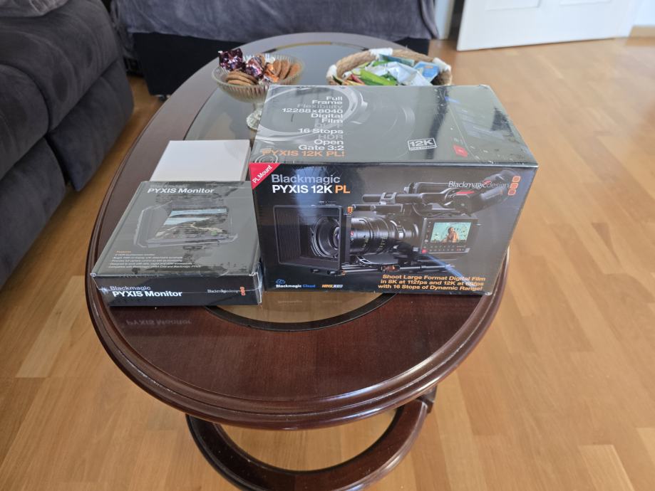 Prodam odlično ohranjeno kamero pyxis 12k. Zraven priložim še v-lock adapter, top handle, spominsko kartico 512gb, pyxis monitor. Ima PL bajonet. Kamera je bila samo preizkušena, nikoli rabljena za kakšen projekt. Stara 3 tedne. Prodajamo, ker smo se odločili, da bomo projekt snemali z drugimi kamerami. Praktično Nova, brezhibna, ima še vse zaščitne folije na ekranu.