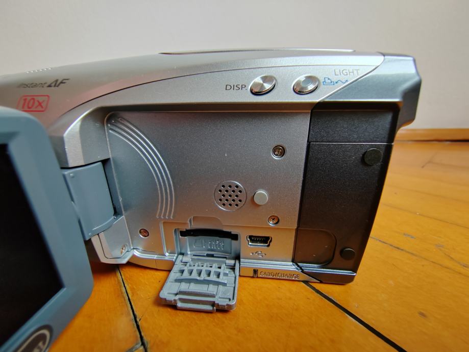 Dolazi sa originalnom baterijom (ne puni se, kameru treba napajati preko strujnog adaptera), strujni adapter, AV kabel, HDMI kabel, FireWire kabel, mini SD kartica 2 GB i torbica za nošenje preko ramena.