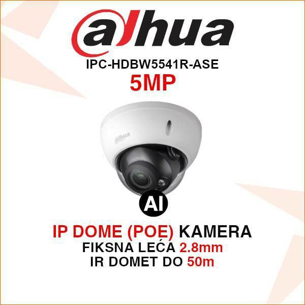 DAHUA 5MP WDR IR DOME AI KAMERA ZA VIDEONADZOR IPC-HDBW5541R-ASE