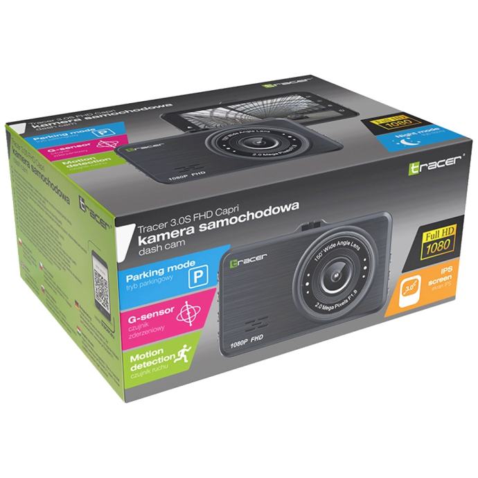 Dash Cam je uređaj neophodan svakom vozaču. TRACER 3.0S FHD CAPRI jamči bezbrižnost vozača osiguravajući da uvijek snimate cestu i da je vaš automobil siguran kada je parkiran. Pripremite se za najvišu kvalitetu videa! Full HD tehnologija znači da proizvod snima slike u visokoj razlučivosti od 1920 × 1080 piksela u širokom formatu. Snimite svoje uspomene u Full HD / 1080p načinu super kvalitete. Snimanje u petlji omogućuje kontinuirano snimanje videa, bez obzira na trenutni kapacitet memorijske kartice. Kad se memorijska kartica napuni, kamera nastavlja snimati, zamjenjujući najstariji materijal trenutnom snimkom.