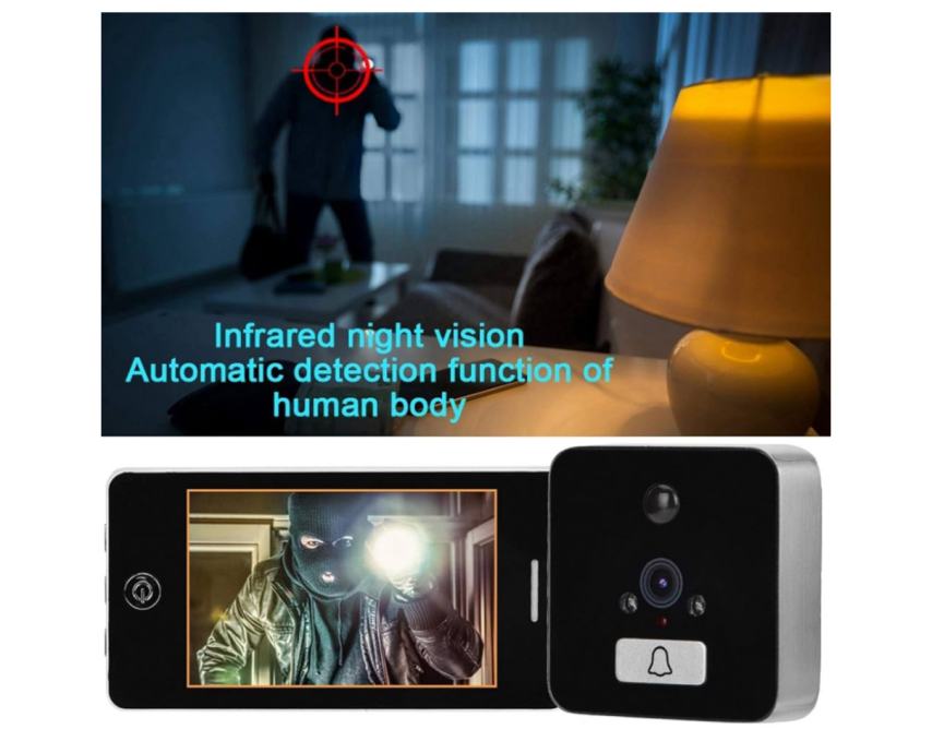 Sigurnosna kamera visoke razlučivosti s 4,3-inčnim LCD zaslonom. Sigurnosni sustav, protiv provala, funkcija automatskog otkrivanja ljudskog tijela. Dostupni su različiti načini rada. Načini rada bez smetnji čine da se osjećate opušteno. Dvostruka upotreba danju i noću, infracrveni noćni vid. Izrađen od legure cinka visoke čvrstoće za maksimalnu izdržljivost. Modni dizajn. Koriste se baterije, nije potrebna instalacija.