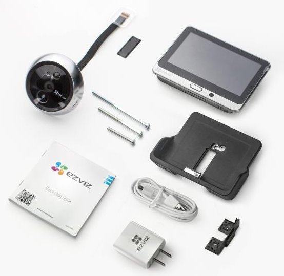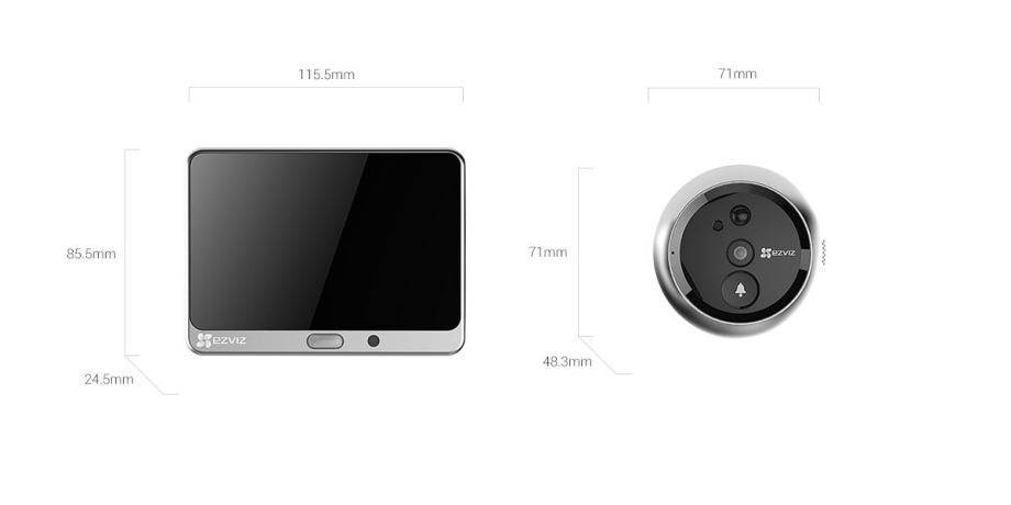 Wi-Fi kamera za vrata (špijunka) ezviz CS-DP2. SMART HOME komplet za vrata, Unutarnja stanica sa 4,3˝ ekranom, Vanjska stanica za montažu na vrata IP54, Pametna detekcija kretanja ljudi, IR senzor pokreta do 6m, 110°, Mikrofon visoke osjetljivosti, Ugrađen zvučnih velike snage, Višestruke melodije zvona