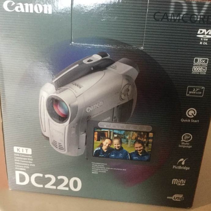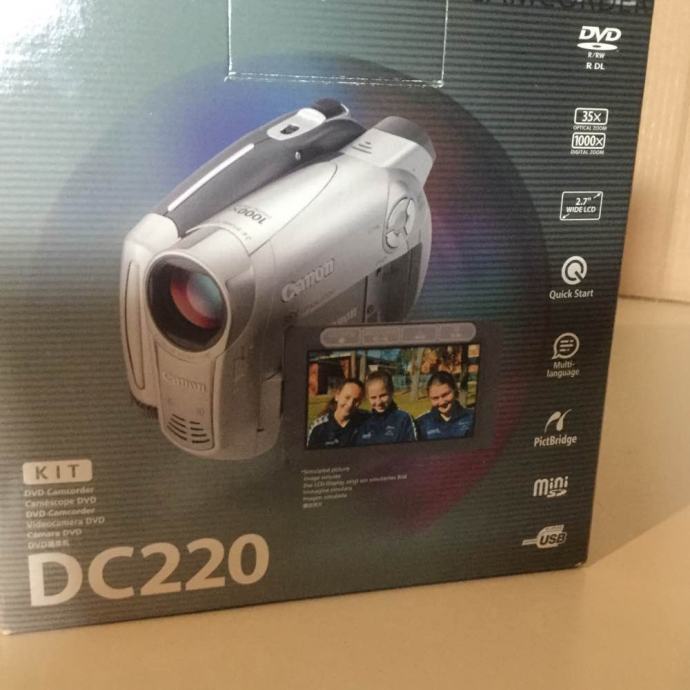 Canon DVD CAMCORDER DC 220 Mini CD.1000xDogitalni ZOOM I 35xOptical sa svim kablovima i 5 praznih mini DVD. Kamera je radila malo takoreći samo isprobana, još je u originalnom pakovanju.To je najbolja kamera u toj klasi na mini DVD diskove a prodaje se jer imam još jednu koju sam dobio na poklon.
