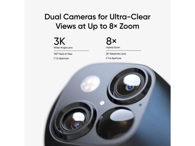 Poboljšana jasnoća dvostruke kamere od 15 m: snimite svaki događaj koji se dogodi u vašem domu u ultra-jasnoj 3K rezoluciji. Vidite tko se točno približava vašem domu uz povećanje od 8x.