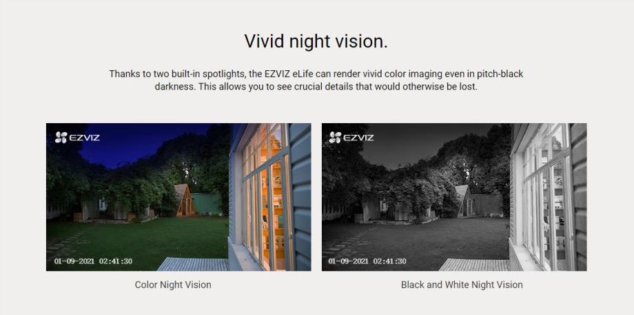 Zahvaljujući dvjema ugrađenim lampama, kamera može prikazati živopisnu sliku u boji čak i u mrklom mraku. To vam omogućuje da vidite ključne detalje koji bi inače bili izgubljeni.