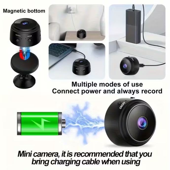GENAI bežična WiFi sigurnosna kamera s 480P HD videom, mobilnim daljinskim pristupom, punjivom baterijom, kompaktnim dizajnom za unutarnju/vanjsku upotrebu, elegantnim crno-bijelim dizajnom, nadzorom u zatvorenom prostoru, modernom kućnom sigurnošću, izdržljivim plastičnim kućištem