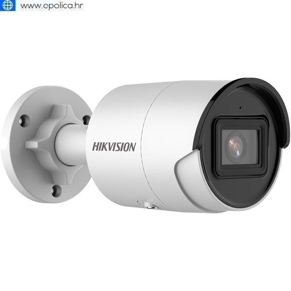 Mini IP bullet kamera rezolucije 6 MP i lećom od 2,8 mm.DS-2CD2063G2-I Hikvision IP kamera, rezolucija 6MP, fiksna leća 2.8mm, AcuSense, 120 dB WDR, domet IR-a do 40m, razlikovanje ljudi i vozila.