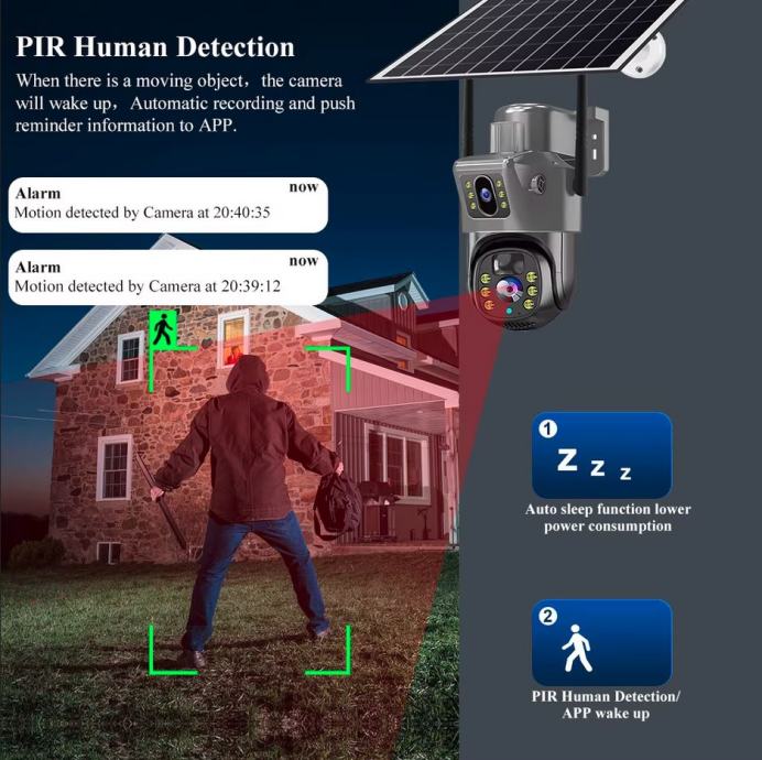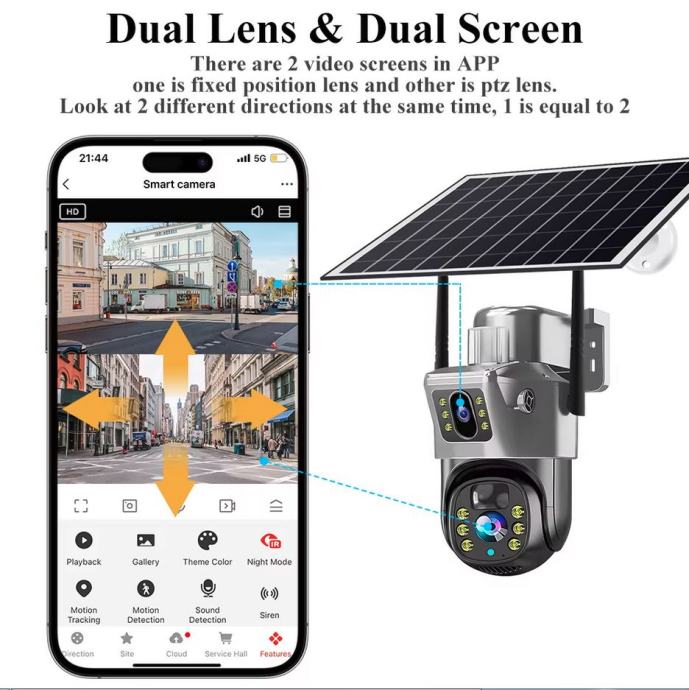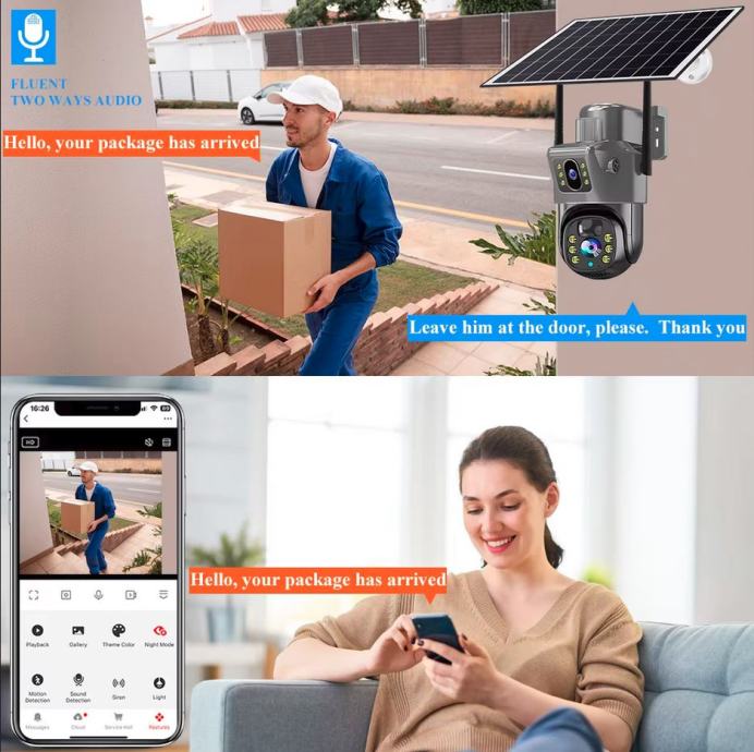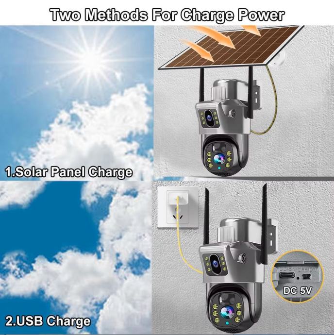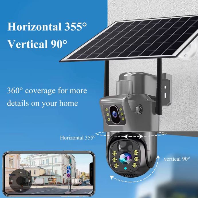 IP66 vanjska solarna PTZ WiFi kamera s 2 leće od 4MP i 2 zaslona od2K