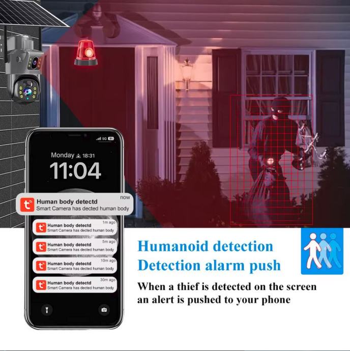 • Inteligentni alarm za detekciju ljudi: alarm uslijed detekcije pokreta, obavijest putem aplikacije i snimanje alarma,