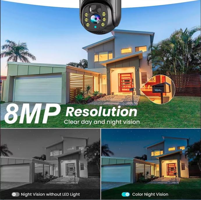• Dizajn s dvostrukim izvorom svjetla, ugrađeno infracrveno svjetlo + bijelo svjetlo, mogućnost podešavanja noćnog vida (infracrveno i noćno