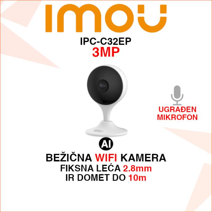Imou IPC-C32EP je kompaktna i pametna Wi-Fi kamera dizajnirana za nadzor interijera. Sa senzorom od 3 MP (2304×1296) i širokokutnim objektivom, snima jasne i detaljne videozapise koji korisniku omogućuju dobar pregled prostora.