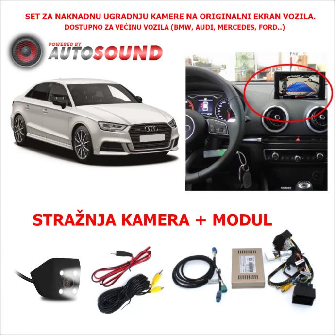 Set za naknadnu ugradnju kamere na postojeći originalni ekran u vozilu.