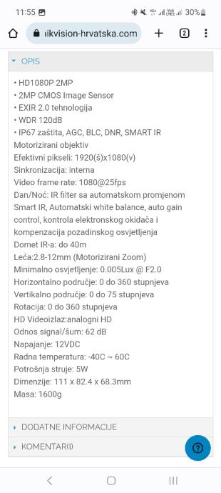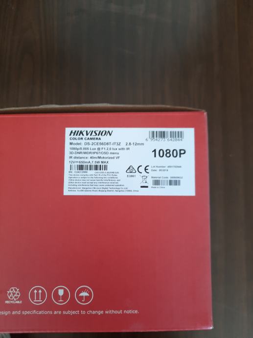 Model DS-2CE56D8T-IT3Z(1080P, 2.8MM=103°, 0.01 LX, IR UP 20M)