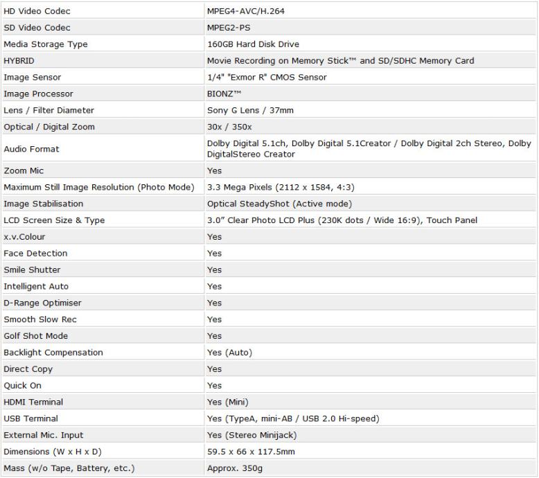 Detalji na : https://www.bhphotovideo.com/c/product/748415-REG/Sony_HDR_XR160_HDR_XR160_HD_HDD_Flash.html