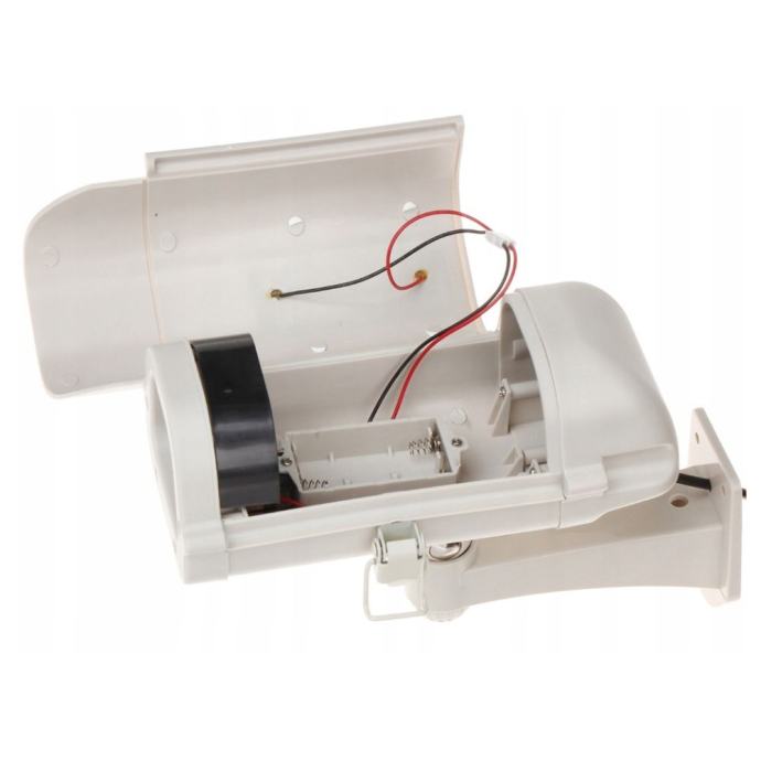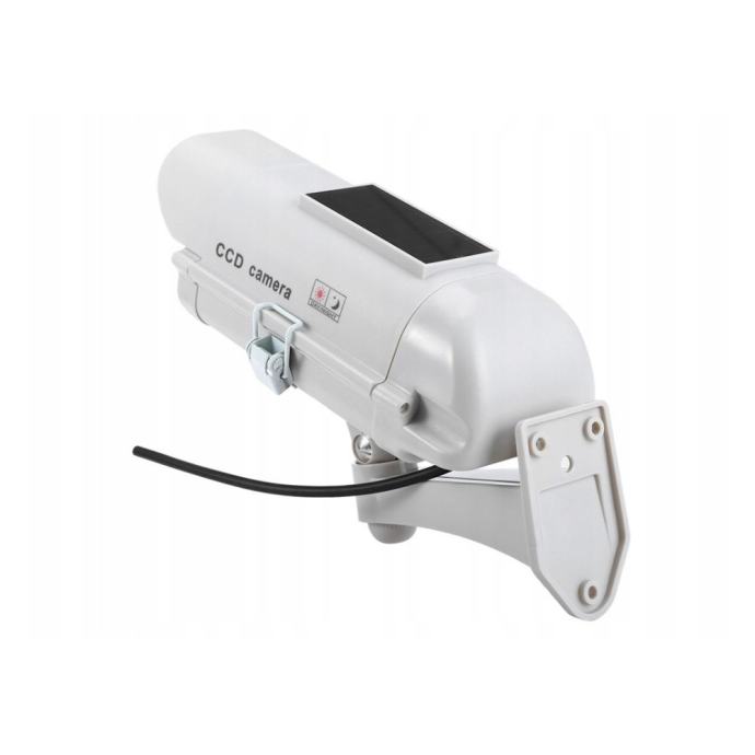 Ova lažna kamera dizajnirana je s visokim stupnjem pažnje na detalje. Kombinacija crvene LED trepćuće diode i precizno oblikovane leće stvara dojam prave CCTV kamere. Takav izgled omogućuje da kamera izgleda kao aktivni sustav nadzora, čineći vašu imovinu sigurnijom.