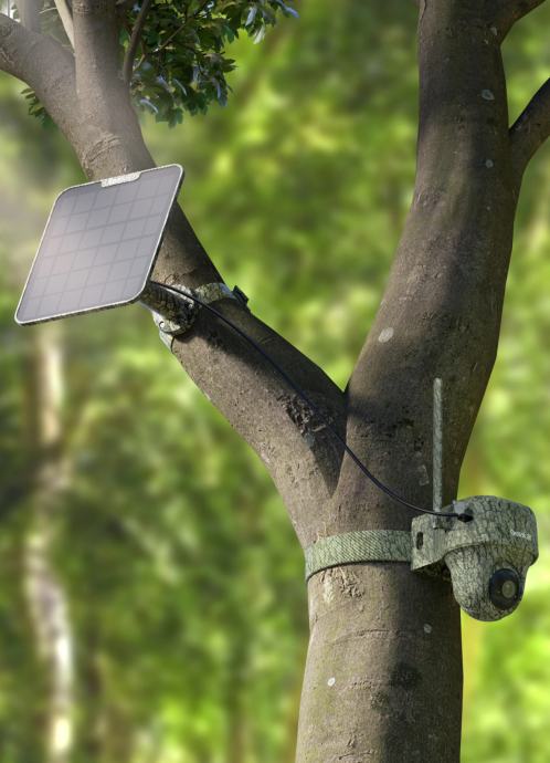 Napaja se putem ugrađene punjive baterije od 6000mAh i dolazi s podesivim solarnim panelom snage 6W za kontinuirano napajanje. Dakle nije potrebno imati struju na mjestu gdje se nalazi, a za razliku od klasičnih lovačkih kamera nije potrebno niti mijenjati baterije.