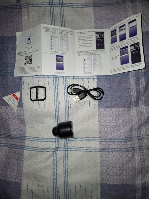 Nova nekorištena mini kamera. Ima utor za SD karticu za snimanje. Spaja se na WiFi pa se njoj može pristupiti na daljinu putem aplikacije.