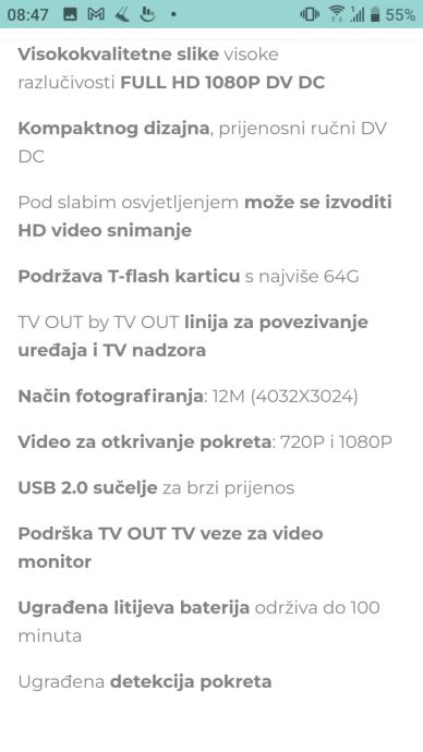 Visokokvalitetne slike visoke razlučivosti FULL HD 1080P DV DC