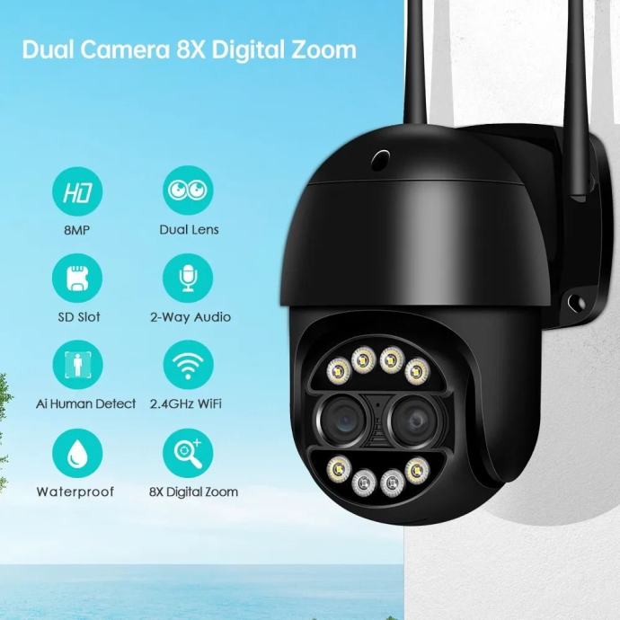 Dobrodošli u naš web shop! Predstavljamo vam WiFi kameru 4K ULTRA HD – uređaj koji će vam pružiti nevjerojatnu sigurnost i nadzor. Ova kamera nudi visoku rezoluciju od 8 MP, 8X digitalni zoom i mnoge druge značajke koje će vam olakšati život i pružiti mir.