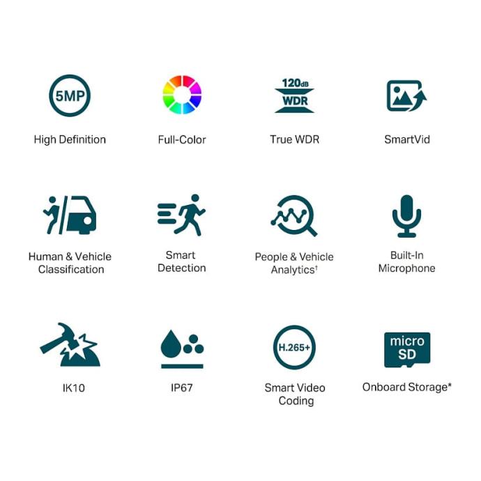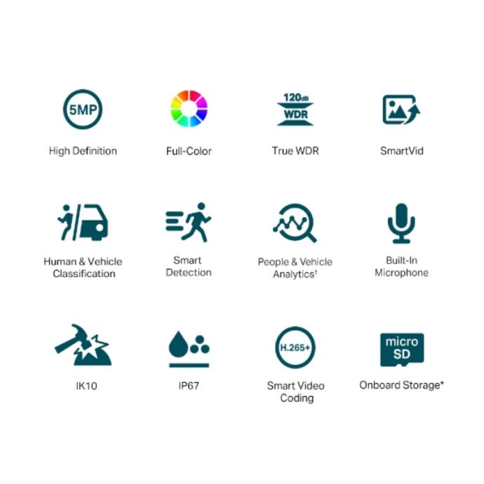TP-Link VIGI 5MP Full-Color Dome idealna je za sigurnosne sustave koji zahtijevaju visoku rezoluciju, pouzdan rad u svim uvjetima i napredne mogućnosti AI analitike uz jednostavno upravljanje putem VIGI aplikacije ili NVR-a.