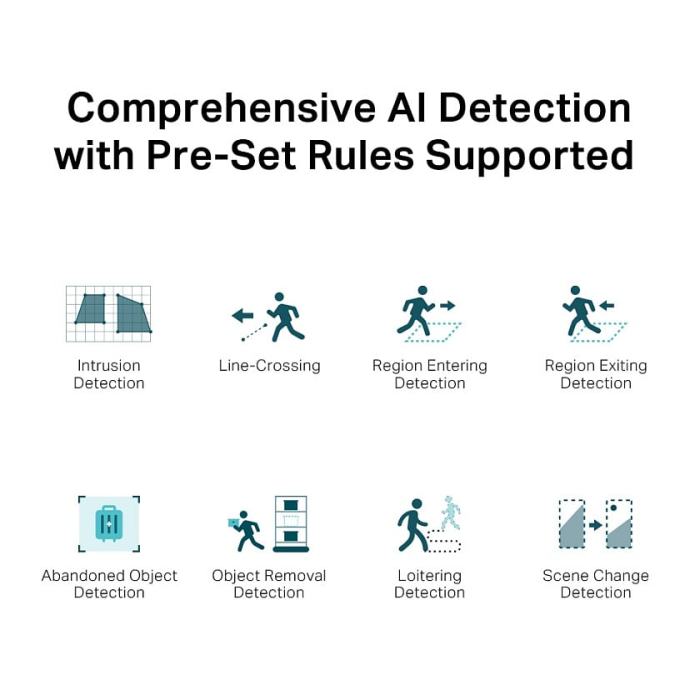AI funkcije: detekcija ljudi, vozila, prelazak linije, upad, ostavljeni ili uklonjeni objekt