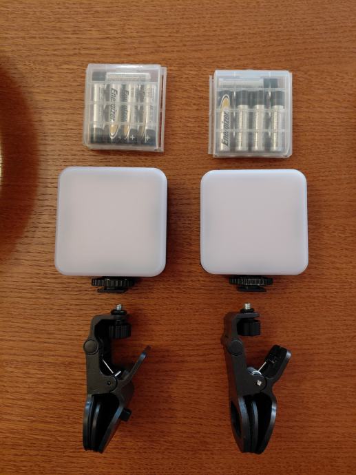 - Dva LED reflektora (baterijska) s originalnim CLIP-nosačima i flash nasjedom za montažu na nosač (u setu su dvije kutije s baterijama)