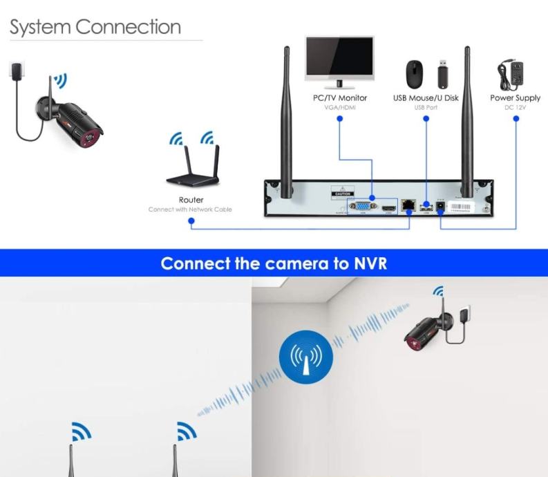 POTPUNO BEŽIČNO - Kamere imaju WIFI antenu preko koje komuniciraju sa snimačem. Domet antene do 60 metara.