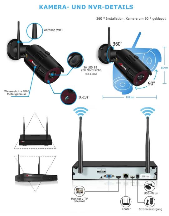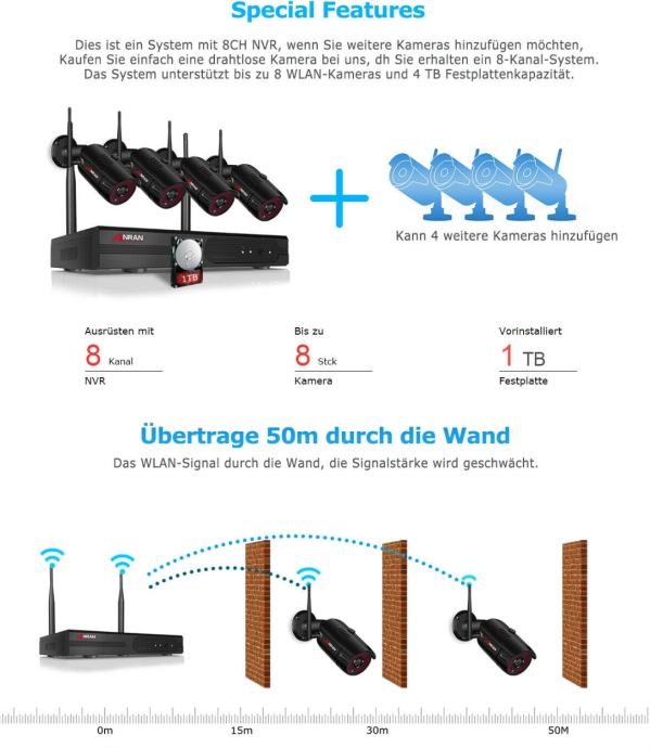 Komplet video nadzor sastoji se od 8 x WIFI brži ne FullHD kamere 1080P rezolucije.