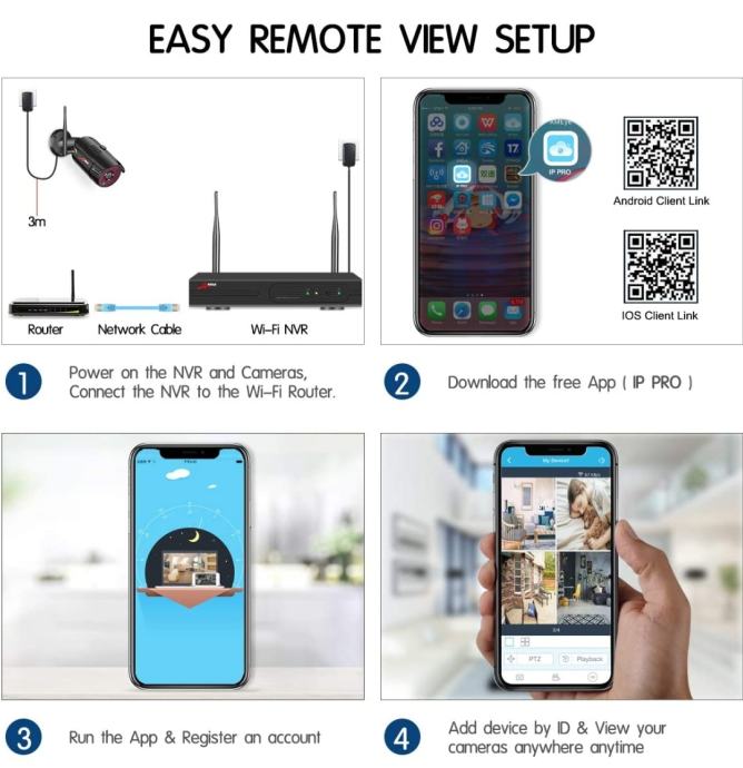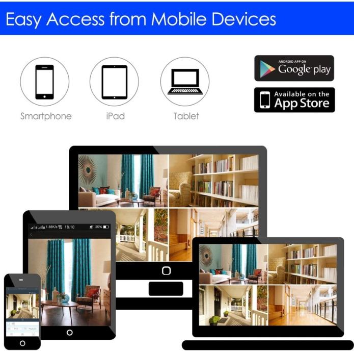 - Upravljane preko aplikacije na mobitelu, tabletu ili računalu, također je moguće gledati live stream kamera u realnom vremenu te pregledavati snimljeni sadržaj vrlo profesionalno.