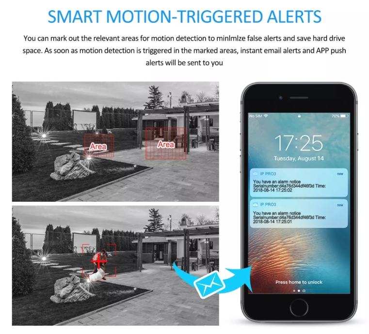 SENZORI POKRETA - Kamere imaju ugrađene osjetljive senzore pokreta, te prilikom detekcije mogu Vama na mobitel javiti da se nešto kretalo oko kamera