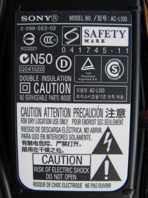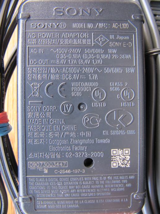 Punjač SONY AC-L 100 / adapter / strujni za kameru