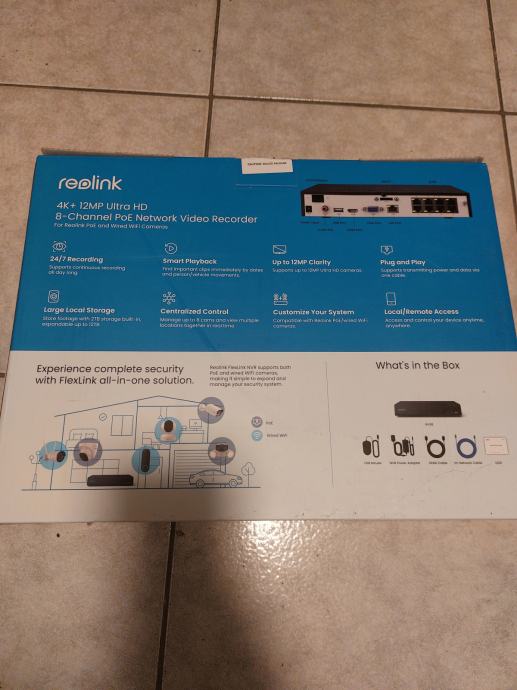 Prodam snimac Reolink NVR 12. Prikljucitev 8 kamera, 4K, 12 MP. Ugradjen tvrdi disk 2 TB. Novo. Racun, garancija.