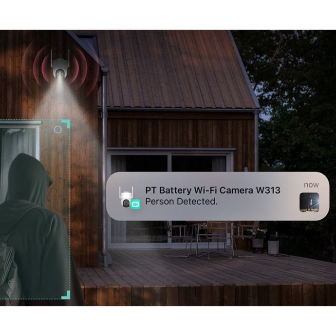 Kamera prepoznaje pokrete i ljude te vas odmah upozorava. U slučaju uljeza aktivira se svjetlosni i zvučni alarm, a obavijest stiže na vaš telefon.