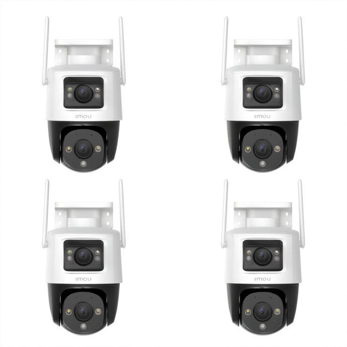 Ovaj set od 4 vanjske WiFi kamere IMOU Cruiser Dual 8MP stvoren je za korisnike koji žele ozbiljnu zaštitu. Idealan je za velika dvorišta, kuće, okućnice, hale i poslovne objekte. Svaka kamera donosi dvostruku leću i napredne sigurnosne funkcije. Jedan sustav sada čuva cijeli objekt.
