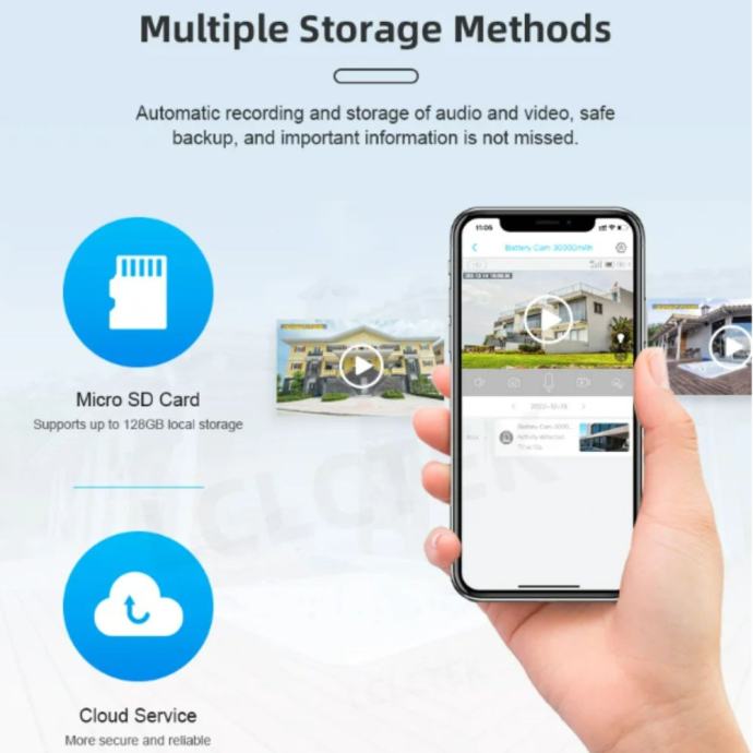 Svi vaši video i audio zapisi mogu se sigurno pohraniti na TF kartici do 128GB, ili koristiti uslugu pohrane u oblaku. Nema straha od gubitka važnih snimki – sve je sigurno pohranjeno i dostupno vam u svakom trenutku.