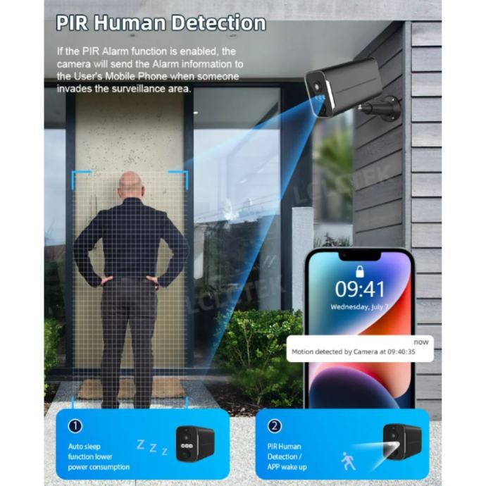 Opremljena baterijama kapaciteta 30.000mAh, ova kamera osigurava dugotrajan rad uz nisku potrošnju energije. Bez potrebe za stalnim napajanjem, kamera se može instalirati bilo gdje – savršeno rješenje za mjesta bez struje.