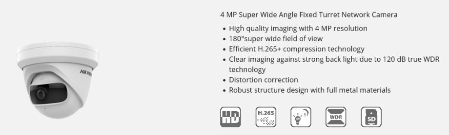 IP turret kamera rezolucije 4 MP i širokokutnim objektivom s kutem snimanja od 180°. DS-2CD2345G0P-I (1.68mm)