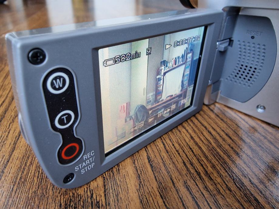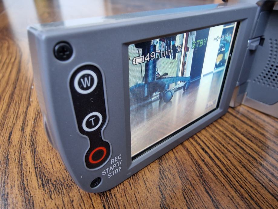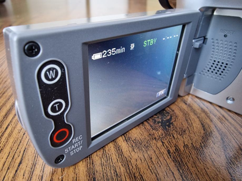Kamera dolazi sa originalnom baterijom (drži 100 min), A/V kabel, USB kabel, fire-wire kabel, kućni punjač, originalni daljinski i CD sa programima i dokumentacijom.