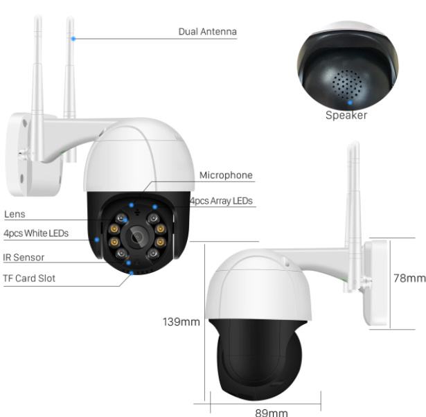 Vanjska nadzorna kamera koja zbog IP66 zaštite i više sučelja spajanja, idealna za vanjski video nadzor. Rezolucija od 1920*1080 daje kristalno jasno sliku, a zbog noćnog načina rada, kvaliteta slike ostaje odlična i u noćnim uvijetima. Zbog ugrađenog detektora pokreta, kamera vas može putem mobilne aplikacije upozoriti na kretanje u prostoriji.