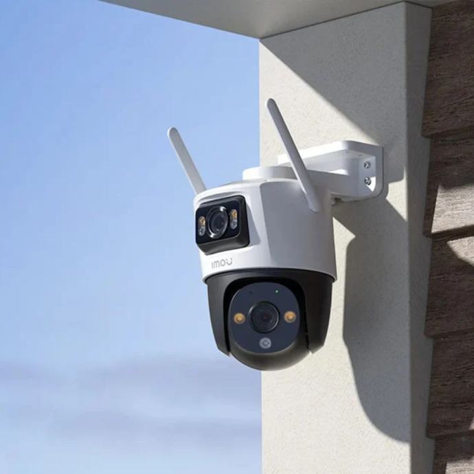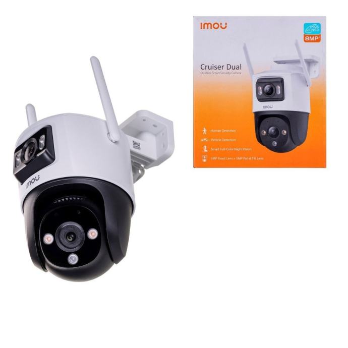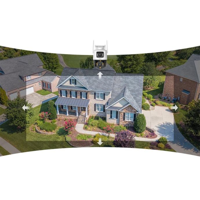 Povećajte sigurnost svog doma uz vanjsku Wi-Fi nadzornu kameru s dvije leće i rotirajućim objektivima. Ova pametna kamera omogućuje istovremeno praćenje dvaju područja, idealno za nadzor ulaza, dvorišta ili parkirališta.