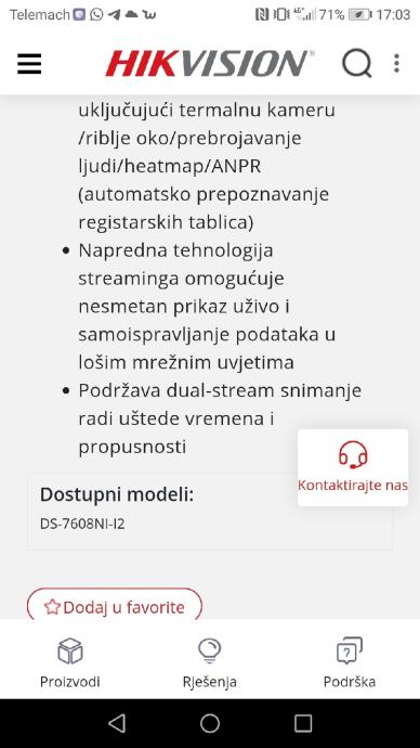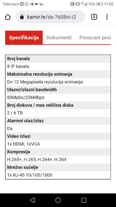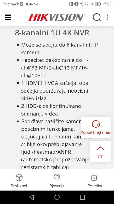 Prodajem novi Hikvision turbo hd DVR 7200series snimač 4 kanalni. Cijena bez hard diska je 150eura,sa hard diskom od 2 TB je 200eura. Hikvision turbo hd DVR 7200series snimač 16 kanalni cijena je 300eura.Hard disk 4TB 120eura. Hikvision NVR mrežni snimač 300eura bez hard diska. Hikvision color camera 10 komada, cijena 120eurapo komadu.Može zamjena za bolji mobitel,cross motor 250ccm ili vise,harmoniku...