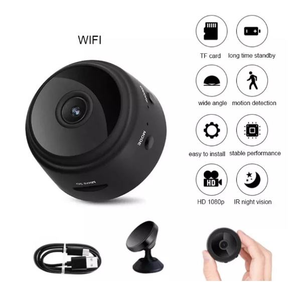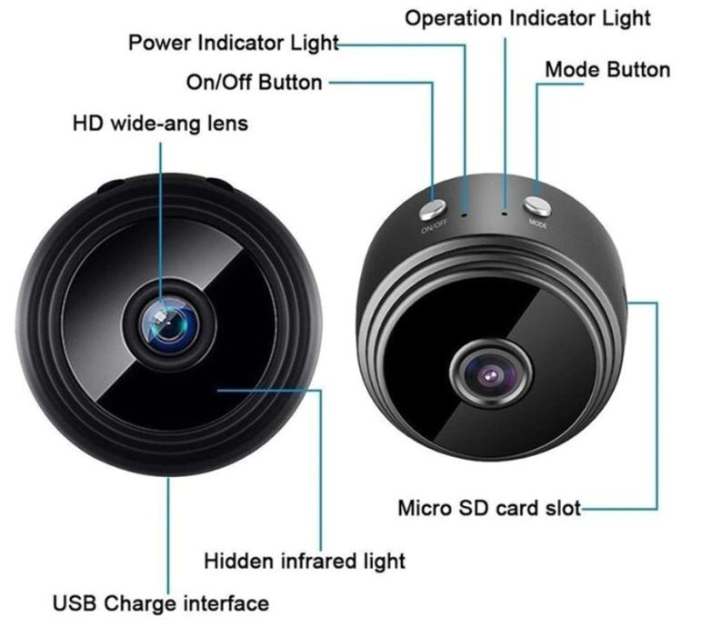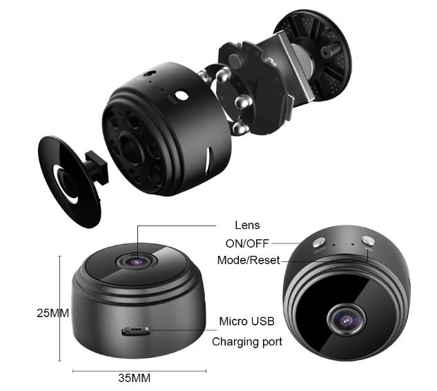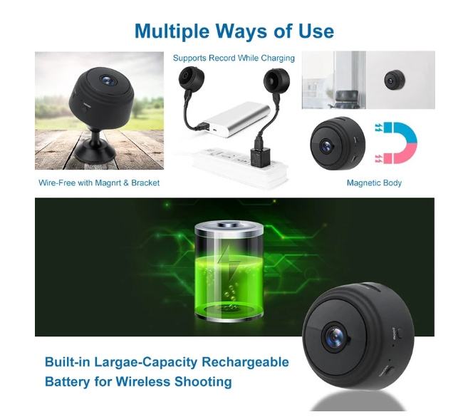 Nadzorna kamera se spaja na wifi mrežu i koristi preko aplikacije na mobitelu. Punjiva preko usb kabla u kompletu. Može se ubaciti memorijska kartica za snimanje, može snimati i bez wifi mreže