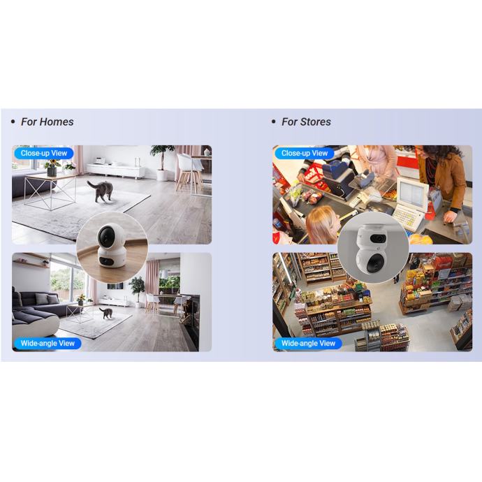 S EZVIZ-ovom jedinstvenom tehnologijom dvostrukih objektiva, H7c Dual pruža sljedeću razinu zaštite koja se obično postiže postavljanjem više kamera. Istovremeno koristi fiksni objektiv i glavni objektiv za pomicanje i naginjanje – dvojac radi samostalno ili zajedno na način koji je puno pametniji od vaše obične kamere.Dvostruka Wi-Fi kamera s panoramskim i nagibnim okretanjem.2K+i 2K+Dvostruke leće Pokreće se umjetnom inteligencijom