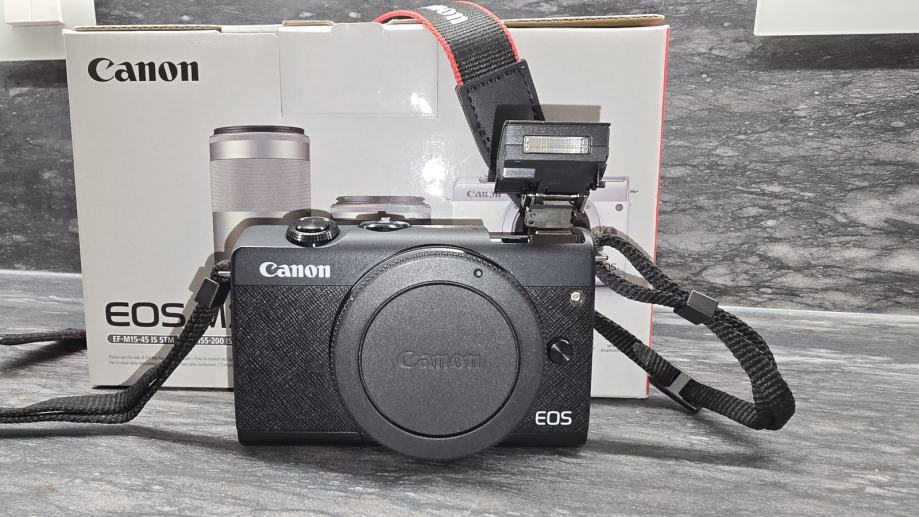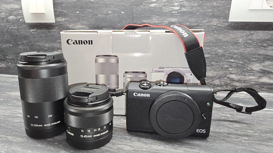 Prodajem Canon EOS M200 sa objektivima 15-45 IS STM i 55-200 IS STM. Kupljen u listopadu 2023., jako malo korišten, kao nov.