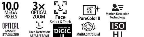 Main Features : Auto red-eye correction, AF-Point Zoom