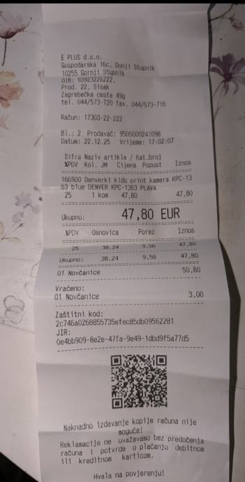 KUPLJENO 22.12 NEKI DAN PLACEN 48 EURA